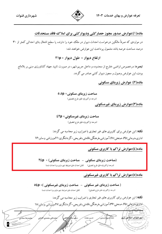 ماده(4): عوارض تراکم با کاربری مسکونی