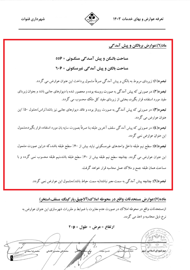 ماده(6): عوارض بر بالکن و پیش آمدگی