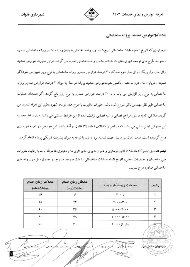 ماده (8): عوارض تمدید پروانه ساختمانی