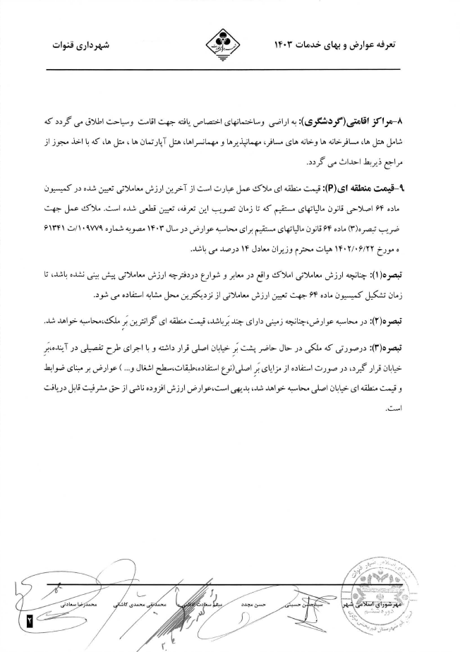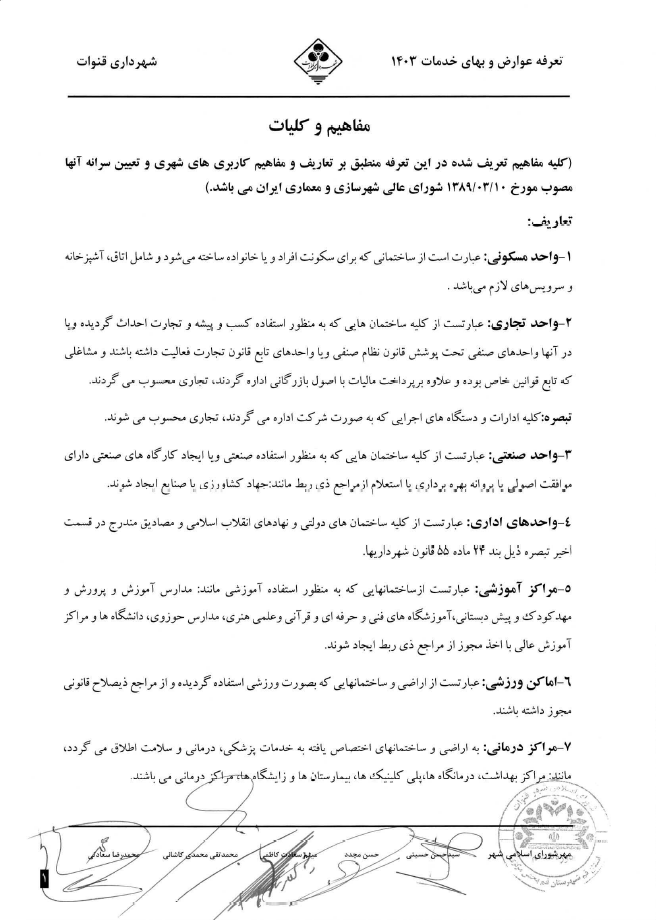 مفاهیم و کلیات تعرفه عوارض و بهای خدمات 1403